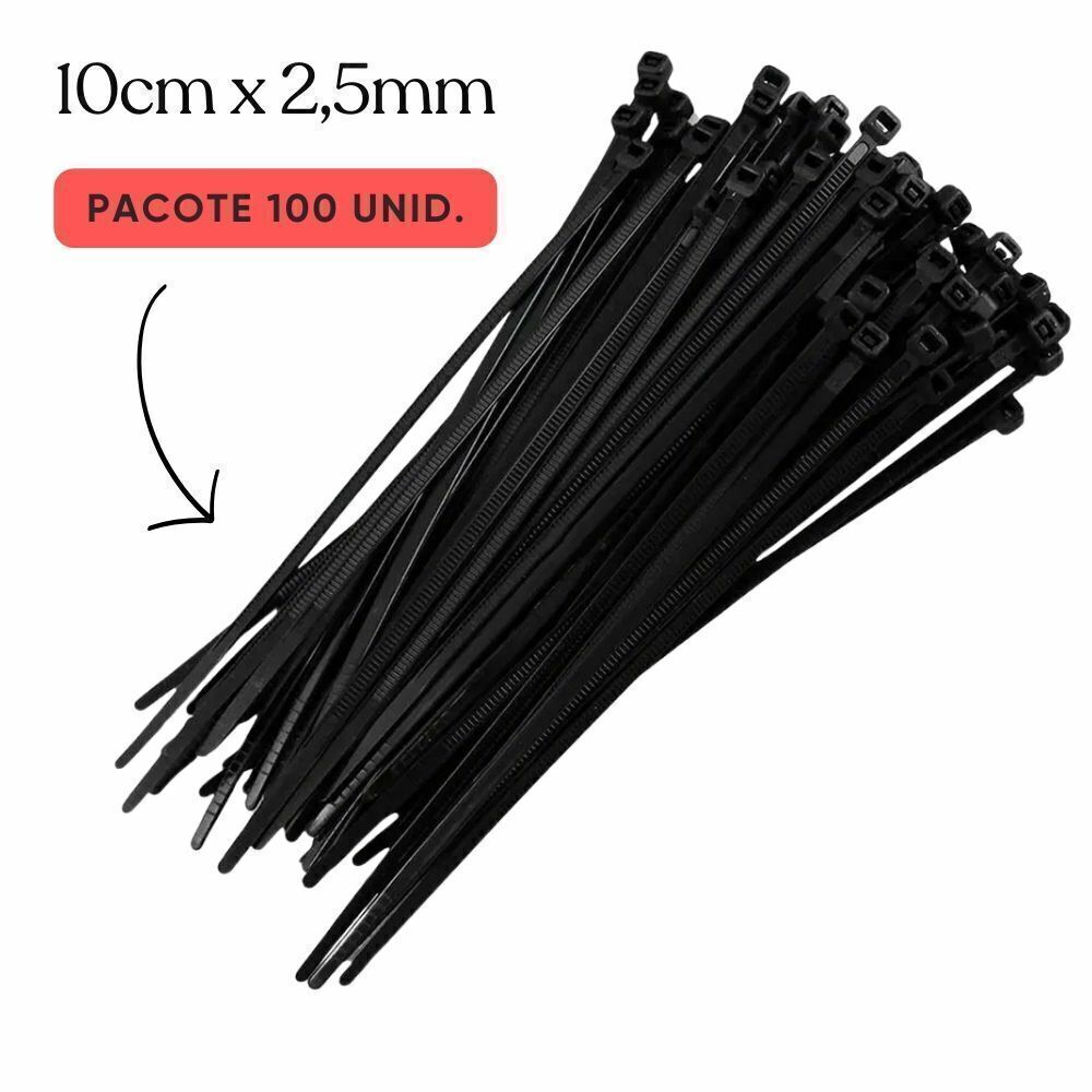 Abraçadeira Plástica Nylon Preta 110 x 2,5mm Pacote 100 unidades
